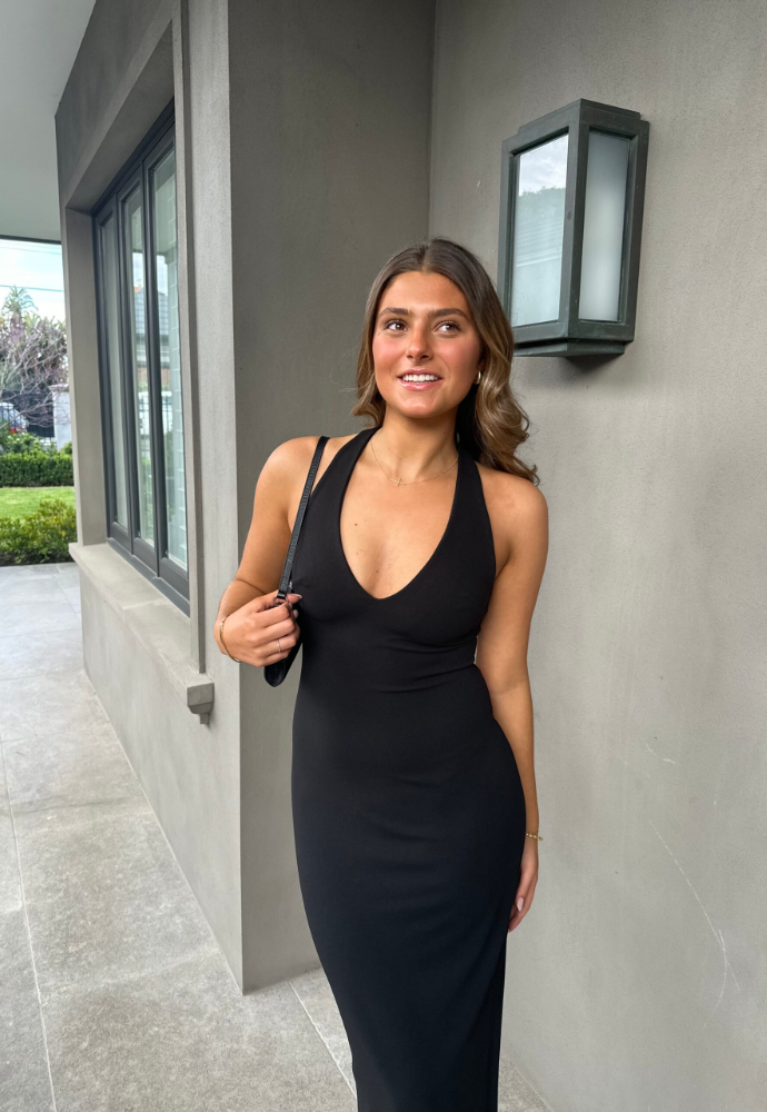 Gorgeous sleek Eiza gown featuring halter neck and bodycon fit.
