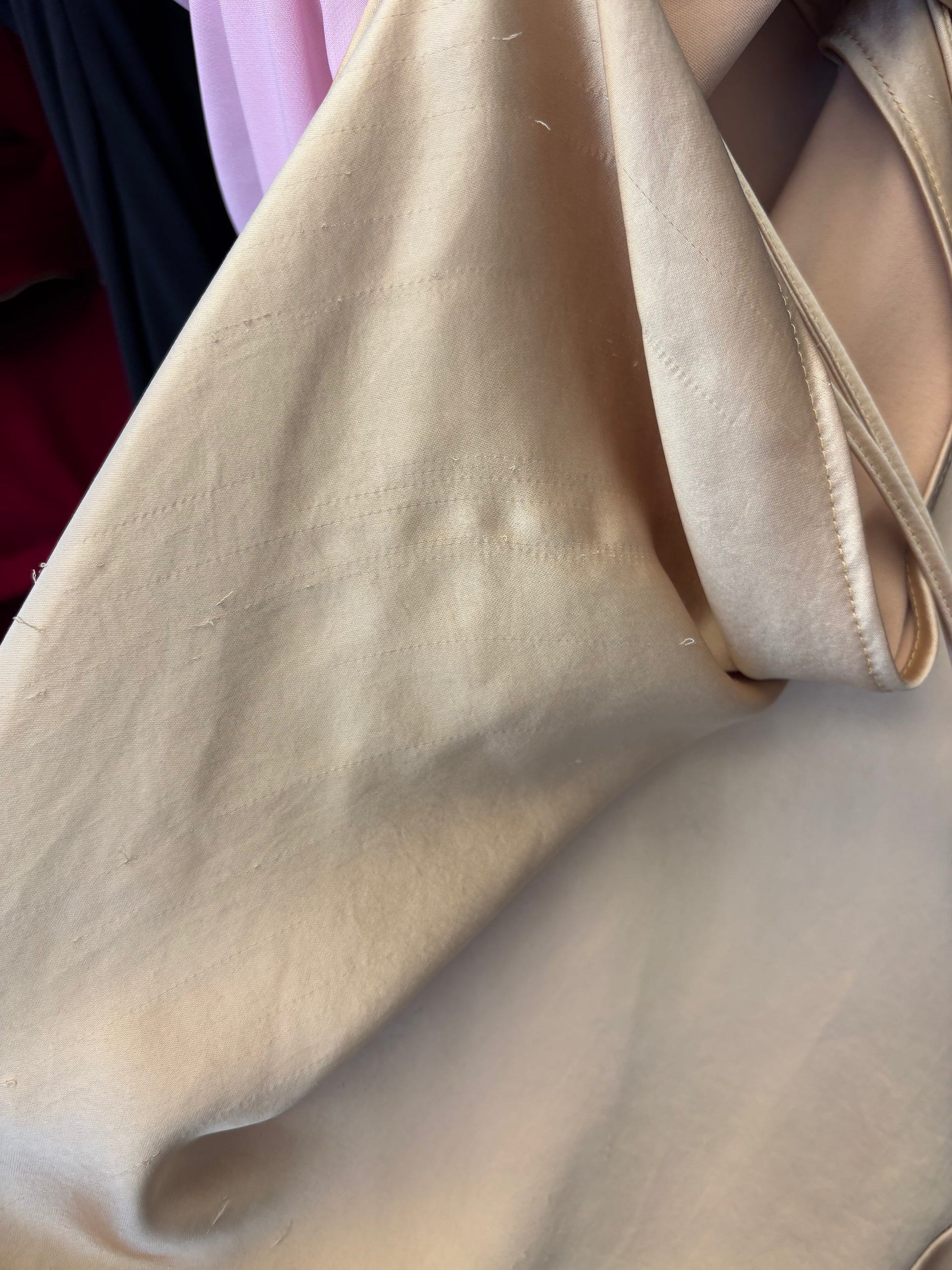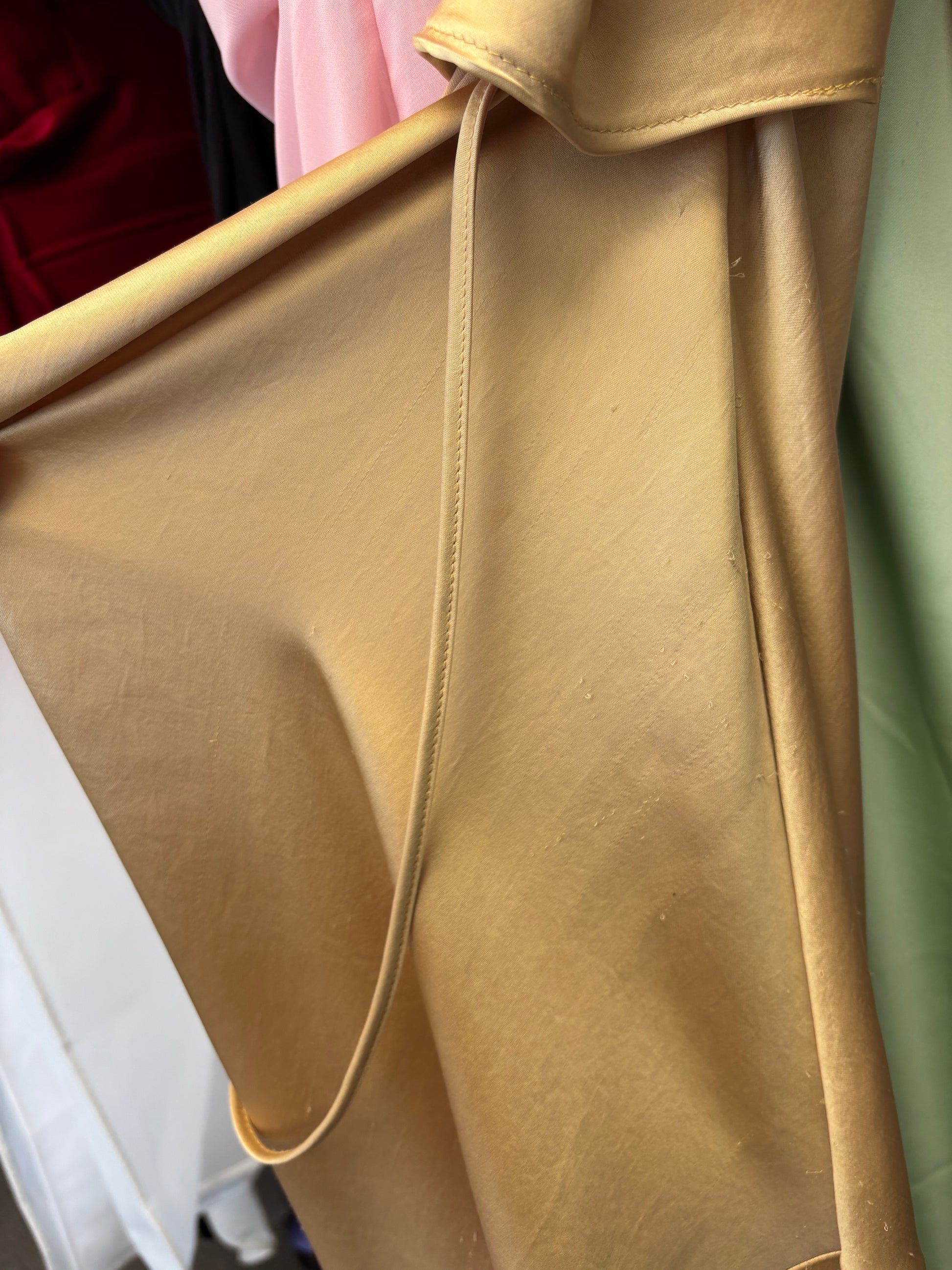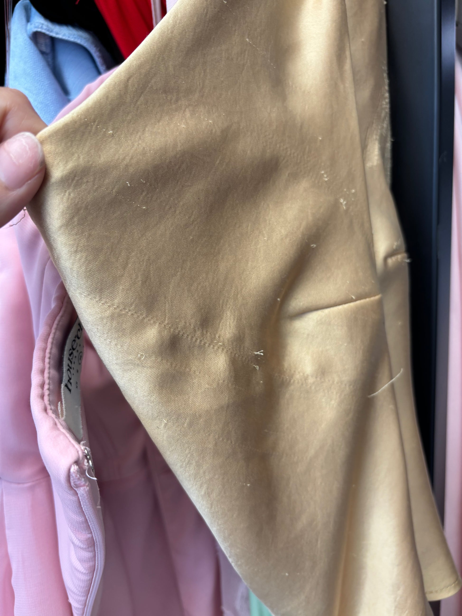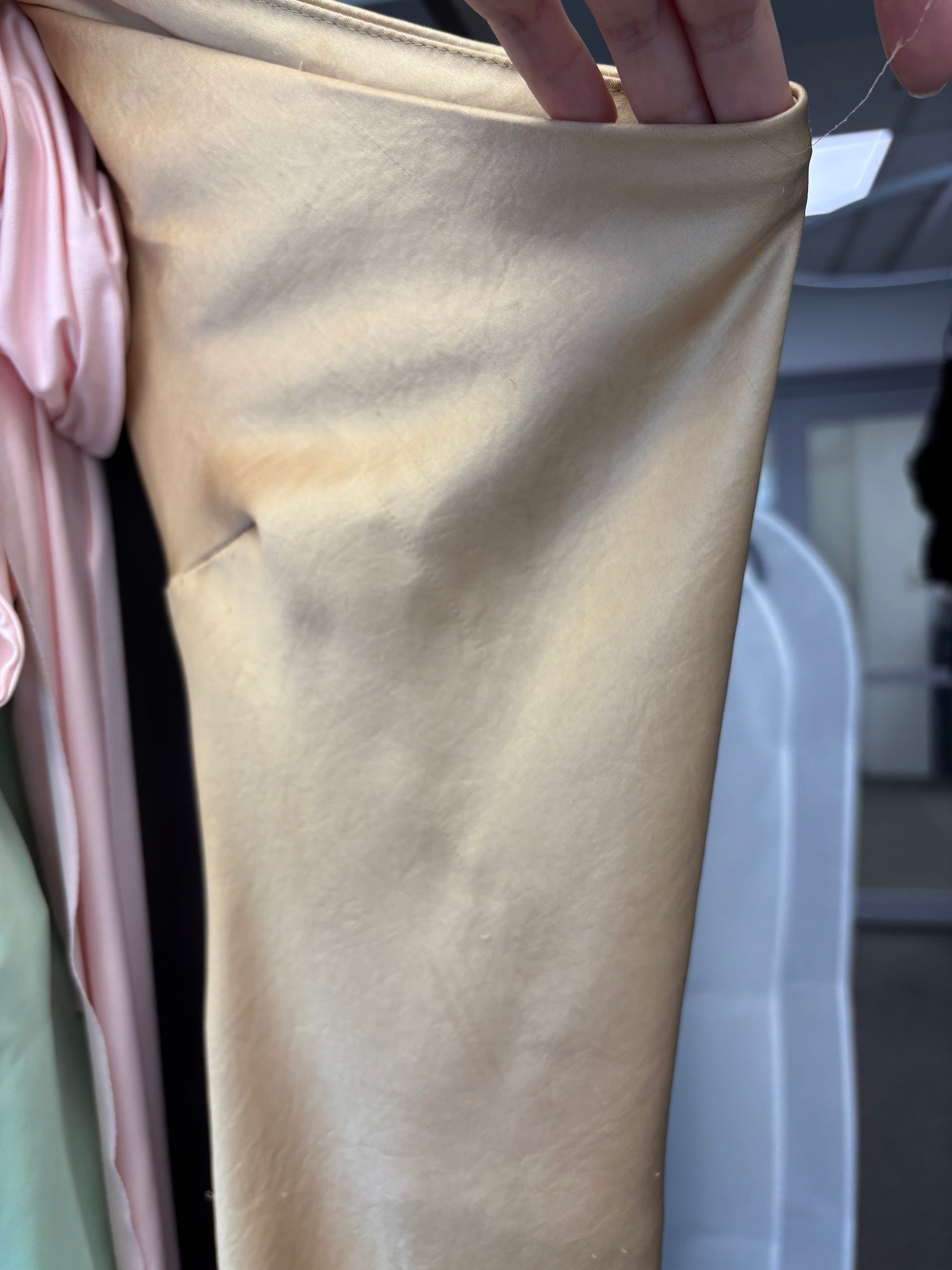 For sale, no returns. Marks and pulls. Gorgeous Arcina Ori Halter dress in light gold.