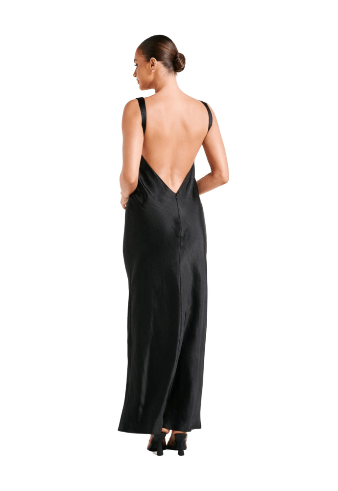 Stunning black slip dress, with cowl back and v neckline.